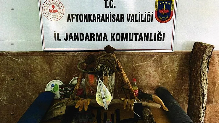 Olay, İscehisar ilçesi Alanyurt köyünde meydana geldi. Edinilen bilgilere göre, devriye gezen jandarma ekipleri kaçak kazı yapıldığını tespit etti. Ardından kazı alanına giden ekipler H.D., İ.G. ve Z.M., isimli 3 şahsı kaçak kazı yaparken suçüstü yaptı. Şahısların alınan ifadelerinde Ankara ve Kırşehir’den define aramak için İscehisar’a geldikleri ve bölgede kazı yaptıkları belirlendi. Şahıslarla birlikte jandarma ayrıca çadır, el detektörü, yük çekme makarası, kürek, halat, testere, meşale, 1.5 litre benzin, 2 adet pirinç metal çubuk, el fenerleri ele geçirildi.