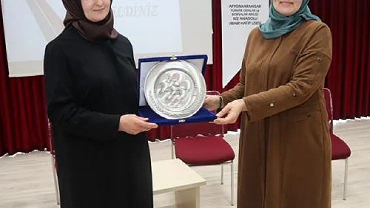 Saygı duruşu ve İstiklal Marşı’nın ardından Kur’an-ı Kerim tilaveti ile başlayan programda Afyonkarahisar İl Müftü Yardımcısı Sevdegül Çekiç tarafından “Değişen Dünyada Kadın Olmak” konulu konferans verildi.