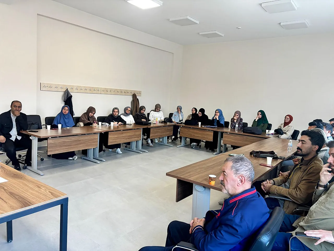 AKÜ İlahiyat Fakültesi Kıraat Musiki Atölyesinde gerçekleştirilen İlahiyat Fakültesi Öğretim Üyesi Doç. Dr. Orhan Musahanlı’nın konuşmacı olarak yer aldığı ahlak okumalarına; AKİFAM Merkezi Müdürü Dr. Öğretim Üyesi Doğan Öztürk, emekli Öğretim Üyesi Prof. Dr. Kemalettin Çonkar ve öğrenciler katıldı.