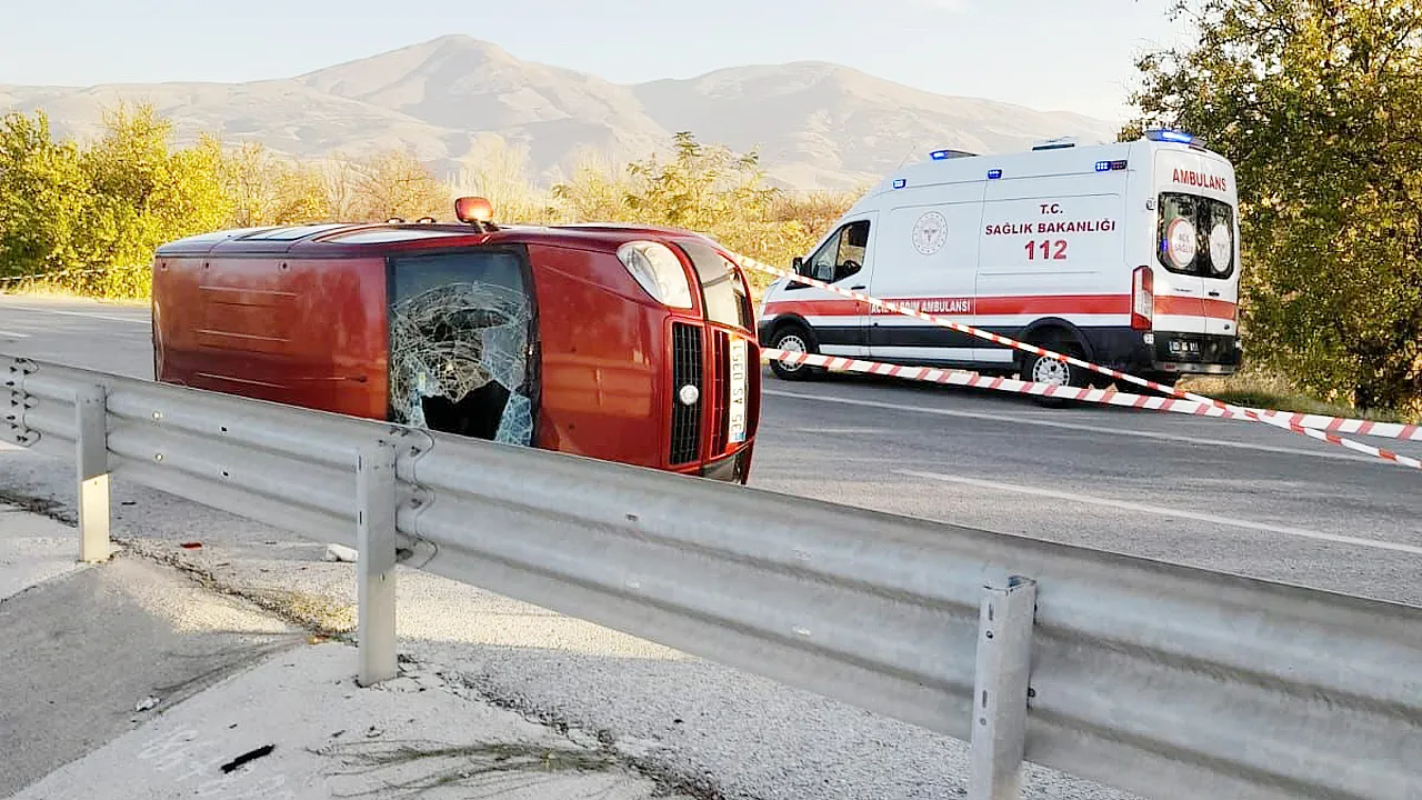 Afyonkarahisar'da kontrolden çıkarak bariyerlere çarpıp devrilen hafif ticari araçta şans eseri ölen ya da yaralanan olmadı.