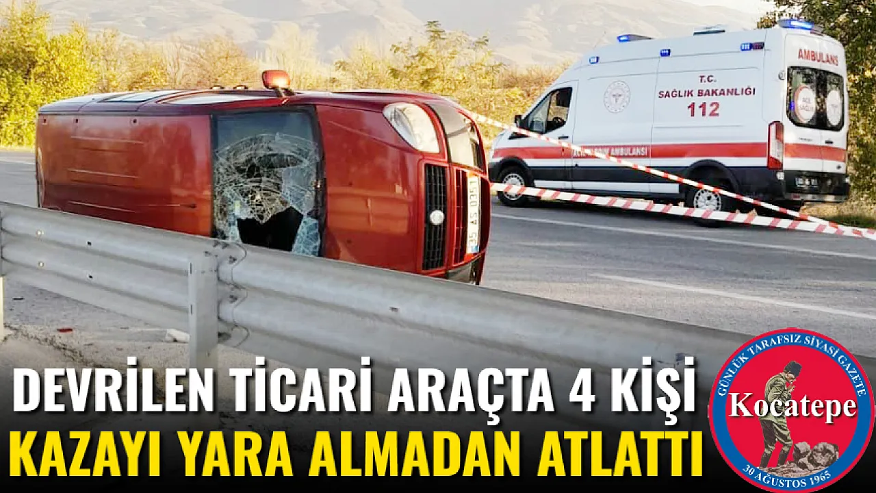 Devrilen Ticari Araçta 4 Kişi Kazayı Yara Almadan Atlattı