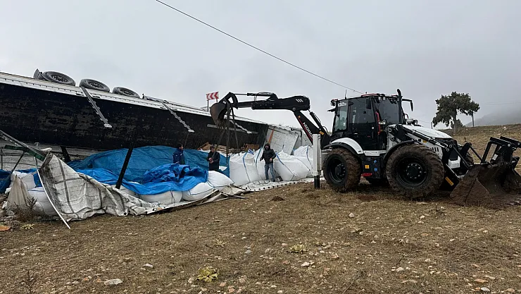 Afyonkarahisar'da kontrolden çıkarak şarampole devrilen tırın sürücüsü yaralanırken, olayda ayrıca aracın dorsesinde taşıdığı 27 ton şeker de çevreye saçılarak ziyan oldu.