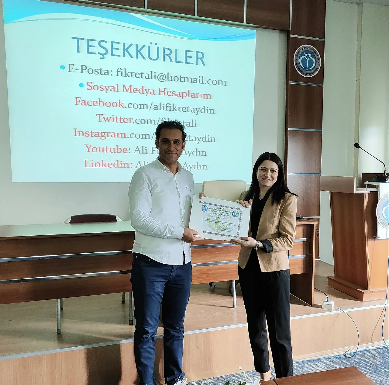 Söyleşi, soru cevap bölümünün ardından Afyon MYO Muhasebe ve Vergi Uygulamaları Bölümü Başkanı Doç. Dr. Banu Demirhan’ın Doç. Dr. Ali Fikret Aydın’a teşekkür belgesi takdim etmesi ve fotoğraf çekimiyle sona erdi.