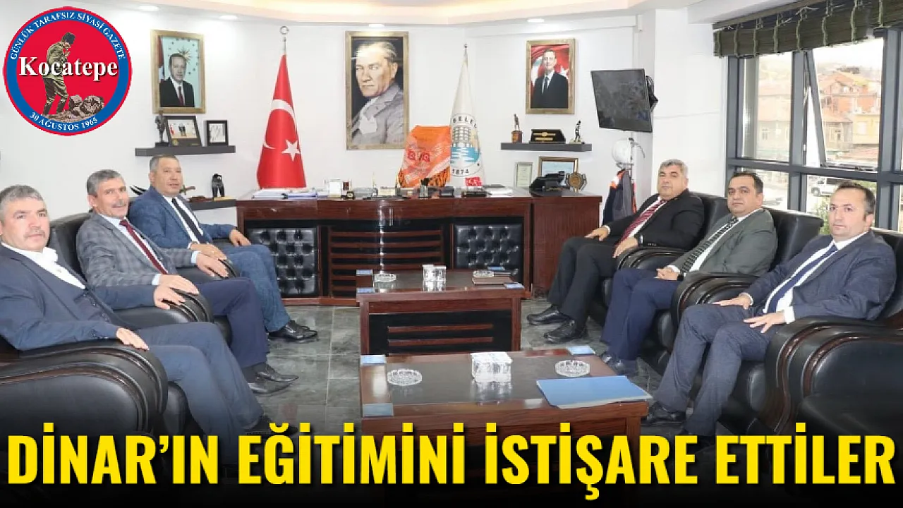 Dinar Belediye Başkanı Veysel Topçu ve Afyonkarahisar İl Milli Eğitim Müdürü Miraç Sünnetci, ilçenin eğitim durumu, yapılacak çalışmalar ve projeler üzerine istişarelerde bulundu.