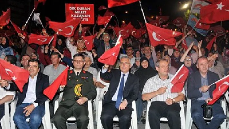Afyonkarahisar Belediye Başkanı Burhanettin Çoban, İl Genel Meclisi Başkanı Salih Sel, AK Parti İl Başkanı İbrahim Yurdunuseven’in de konuştuğu programda Afyonkarahisar Valisi Aziz Yıldırım, “Ordu bizim ordumuz, asker bizim askerimiz, emniyet bizim emniyetimiz, polis bizim polisimiz, jandarma bizim jandarmamız velhasılı kelam hastaneler bizim, doktorlar bizim, hemşireler bizim, hasta bakıcılar bizim, okullar bizim, öğretmenler bizim bunların arasında yanlış yapanlar varsa bunları temizlemek, ayıklamak ve hak edene hak ettiği cezayı vermek de bizim boynumuzun borcudur. Biz de bunu yapmaya çalışıyoruz. Başka ordumuz yok. Böyle düşündüğümüzde ordumuzun değerli mensupları da, emniyetimizin değerli mensupları da burada aramızdalar. İşte askerlerimiz burada ben en büyük teşekkürü de kendilerine sunuyorum. Değerli dostlar bu nöbetler esnasında burada bir şey daha yaptık. Demokrasiyi gerçek anlamda burada teessüs ettirdik” şeklinde konuştu.