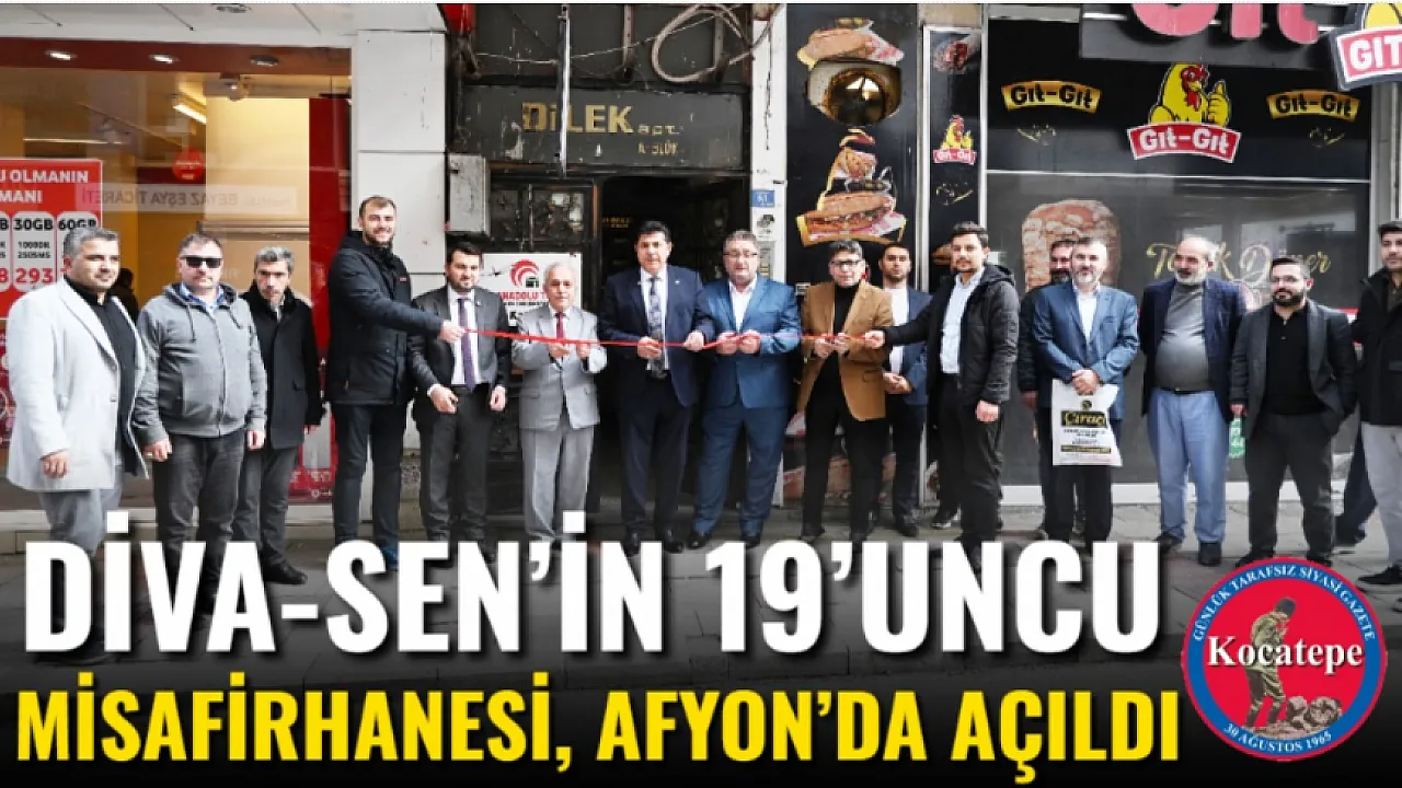 Diyanet ve Vakıf Çalışanları Sendikası (Diva-Sen), Afyonkarahisar'daki Diyanet personeli ve üyelerinin faydalanacağı misafirhane ve il bürosunun açılışını Genel Başkan Osman Taşcı ve Yönetim Kurulu üyelerinin katılımıyla gerçekleştirdi.