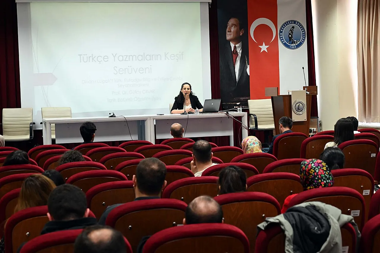 Seminerde, ömrünü nadir eserlerin peşinde geçiren Ali Emiri Efendi’nin hayatı ve Kaşgarlı Mahmud’un eseri Divanü Lugati’t-Türk’ü literatüre kazandırma sürecine ilişkin bilgiler veren Çınar, eserin 1910’lu yıllarda sahaf dükkânında başlayan keşif aşamalarını şu sözlerle ifade etti: