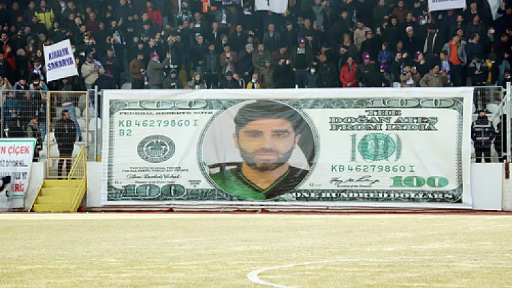 AFJET Afyonsporlu taraftarların Doğan Ateş’e özel yaptırdığı 100 Dolar’lık banknot pankartı maçtan önce dikkat çekti. Dolar pankartını gören Doğan Ateş ise çok güldü