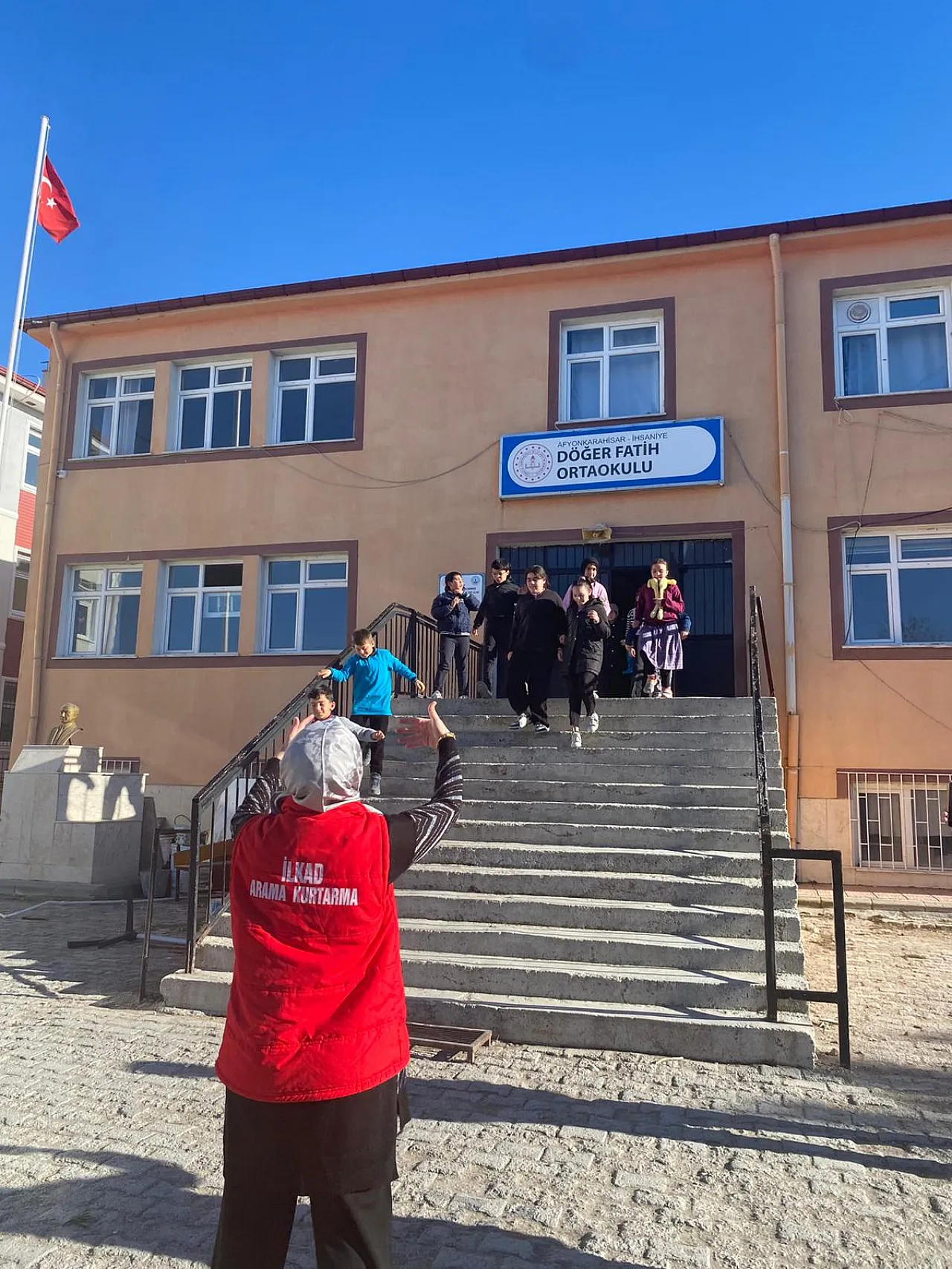 İLKAD Afyonkarahisar Arama Kurtarma Derneği iş birliğiyle okulda düzenlenen eğitim programında, öğrencilere deprem hazırlık çantası, ilk yardım ve deprem anında yapılması gerekenler uygulamalı olarak anlatıldı.