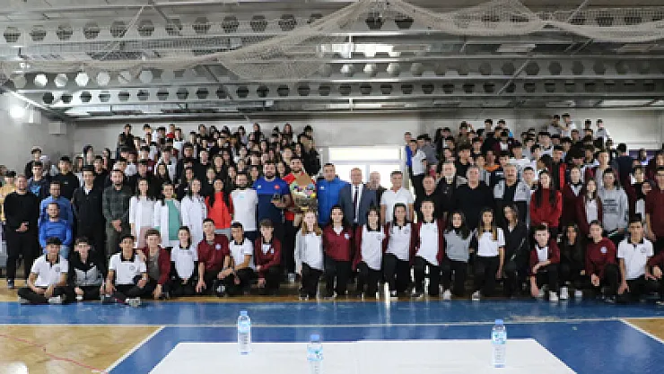 Afyonkarahisar Spor Lisesi’nin daveti üzerine okula gelen Dünya Şampiyonu Fatih Bozkurt, öğrencilerle söyleşi yaptı