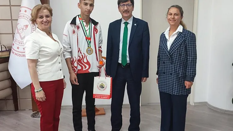 İl Milli Eğitim Müdürü Metin Yalçın’ı ziyaret eden öğrenciye, Okul Müdürü Meltem Eşit, Beden Eğitimi Öğretmeni Neslihan Karaca eşlik etti. İl Milli Eğitim Müdürü Metin Yalçın, başarılı sporcuyu tebrik ederek, emeği geçen herkese teşekkürlerini iletti.