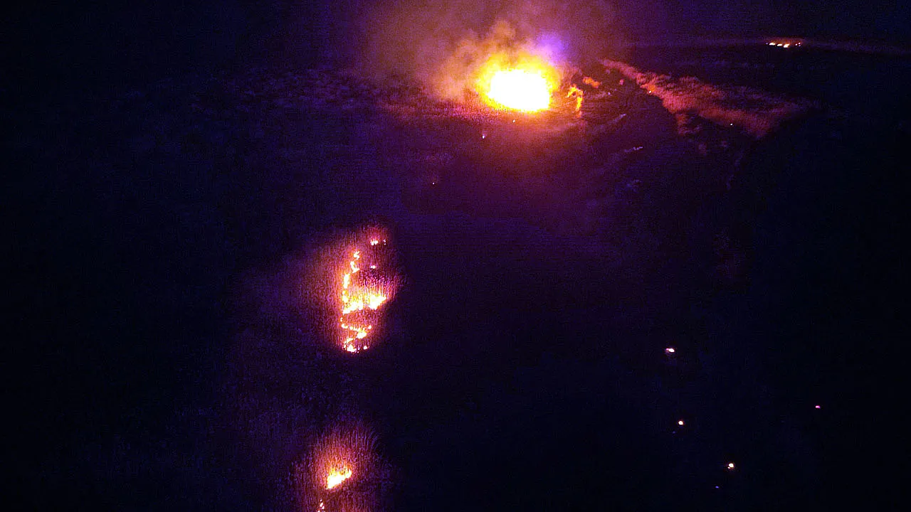 Gölün kuruyan bölümlerindeki sazlık alanda yine yangın çıktı