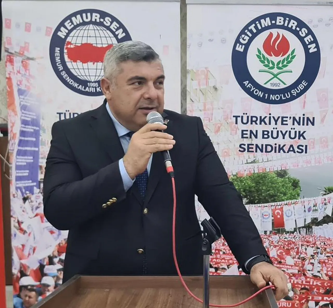 Eğitim Bir-Sen Afyonkarahisar 1 Nolu Şube Başkanı Mustafa Arslan; “Biz inandığımız davaya koşarak gideriz, koşarak gidemezsek yürüyerek gideriz, yürüyerek gidemezsek sürünerek gideriz” diyen merhum Necmettin Erbakan’ın sözleri ile konuşmalarına başladı.