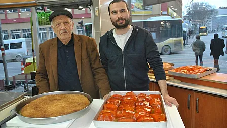 Afyonkarahisar’da ekmek kadayıfı denildiğinde ilk akla gelen Hidayet Korkmaz namı diğer Hidayet Usta torunu Burak Can Köse ile birlikte 60 yıllık lezzet hikâyesini Kocatepe Gazetesi muhabirine aktardı.
