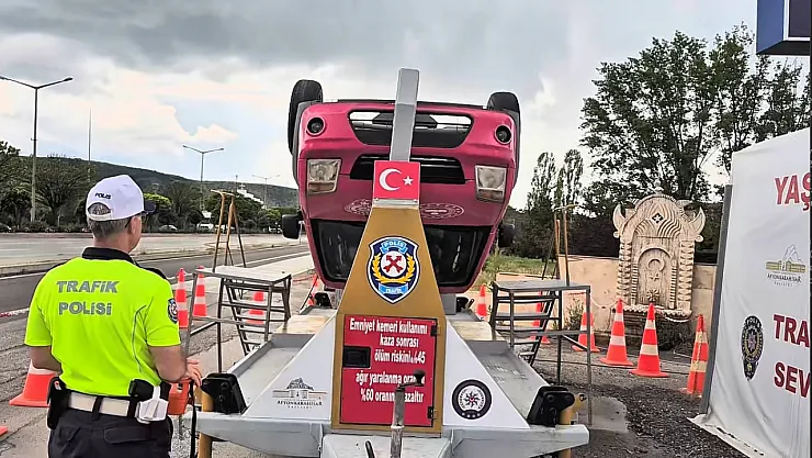 İçişleri Bakanı Ali Yerlikaya tarafından trafikte sıfır can kaybı amacıyla “Bir Kural Bir Ömür” proje ismiyle başlatılan kampanya ve 2025 yılı Kurban Bayramı tedbirleri kapsamında, Afyonkarahisar İl Emniyet Müdürlüğü Trafik Şube Müdürlüğü ekiplerince sürücülere ve yolculara emniyet kemeri simülasyon aracıyla uygulamalı olarak emniyet kemeri takmanın önemi anlatıldı.