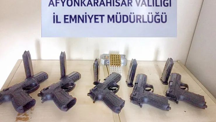 Kaçakçılık ve Organize Suçlarla Şube Müdürlüğü ve İstihbarat Şube Müdürlüğü ekipleri tarafından silah ticareti yapan kişilere yönelik yapılan ortak operasyonda Sinanpaşa ilçesine V.E. isimli kişinin silah getireceği yönünde alınan bilgiler doğrultusunda A.Ö., K.E. ve V.E.’nin de içinde bulunduğu 35 AFU 393 plakalı araç Sinanpaşa ilçesinde durduruldu. Araç içerisinde yapılan aramada, 5 adet tabanca, 30 adet 9 mm çapında tabanca fişeği ile tabancalara takılı vaziyette 5 adet şarjör ele geçirildi. Gözaltına alınan 3 şüpheli kişi hakkında adli işlem başlatıldı.