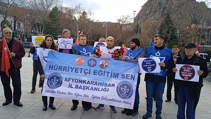 Afyonkarahisar Hürriyetçi Eğitim Sen İl Temsilcisi Nizamettin Şenol, memurun haklarını gündeme getirmek için basın açıklaması yaptı. Zafer Meydanında gerçekleştirilen basın açıklamasında Şenol, TÜİK enflasyon verilerini reddettiklerini ve işçi sınıfının refah seviyesinin yükseltilmesi taleplerini dile getirdi.