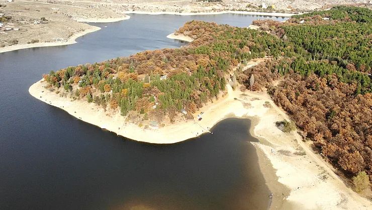 Kütahya'da Enne Barajı ve Tabiat Parkı, sonbaharın son günlerinde ziyaretçilerine eşsiz manzaralar sunuyor.