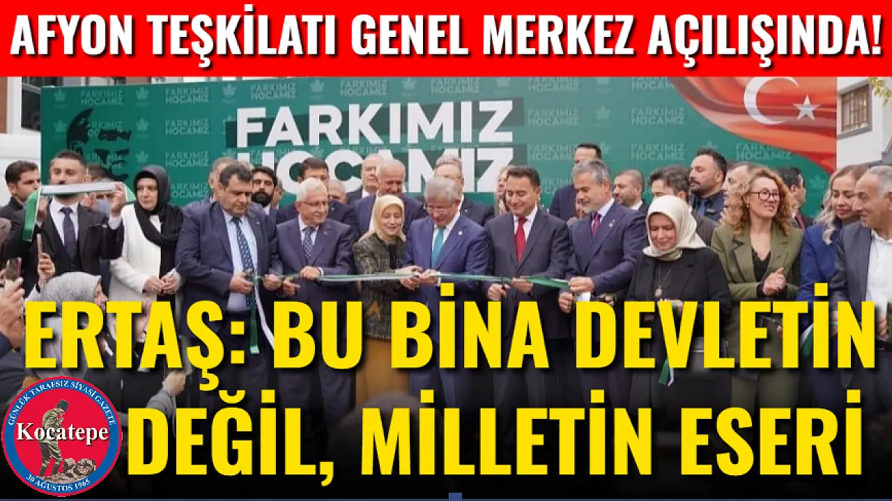 Gelecek Partisi Genel Merkez binasının açılış töreni Ankara'da gerçekleştirildi. Törene katılan Gelecek Partisi Afyonkarahisar İl Başkanı Niyazi Ertaş, 'Bu bina milletin alın teriyle inşa edildi' dedi.
