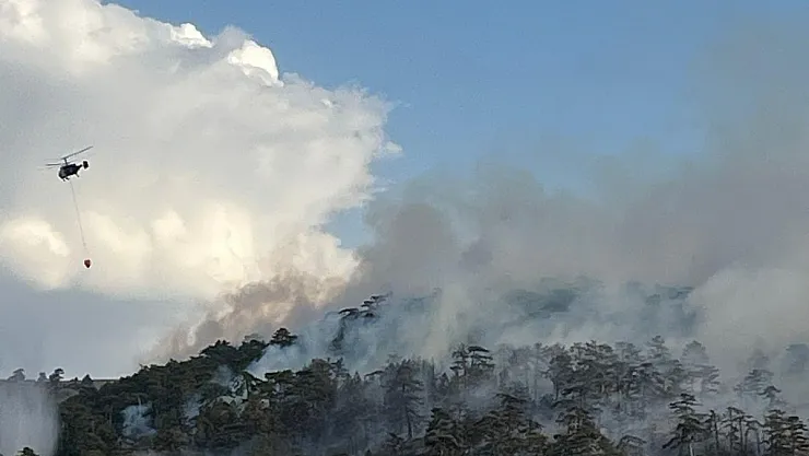 Eskişehir'de 7 saattir büyüyerek devam eden orman yangınını söndürmek için ekiplerin havadan ve karadan müdahalesi devam ediyor.