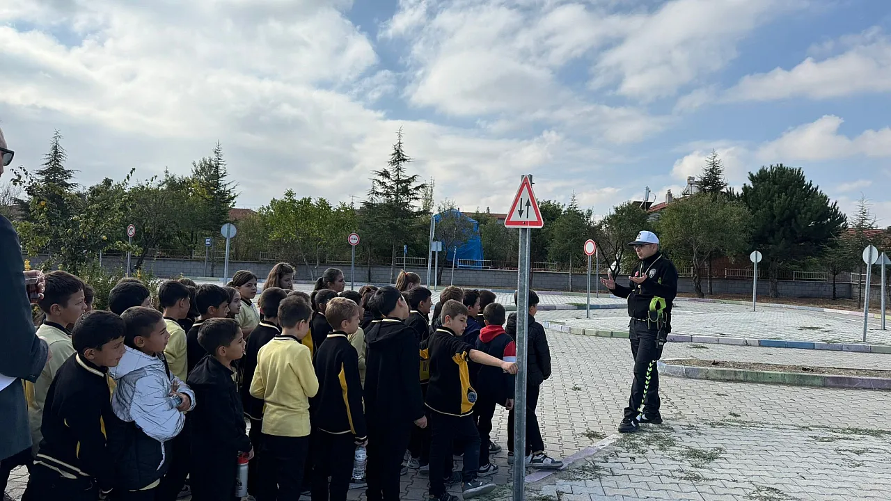 Afyonkarahisar'da polis ekiplerince Fatih Ortaokulu'nda 75 öğrenciye 'Trafik Güvenliği' konulu uygulamalı eğitim verildi.