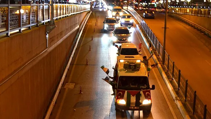 Türkiye ve Filistin bayraklarının birlikte taşındığı konvoyda işgalciler aleyhine, Filistin lehine sloganlar atıldı.