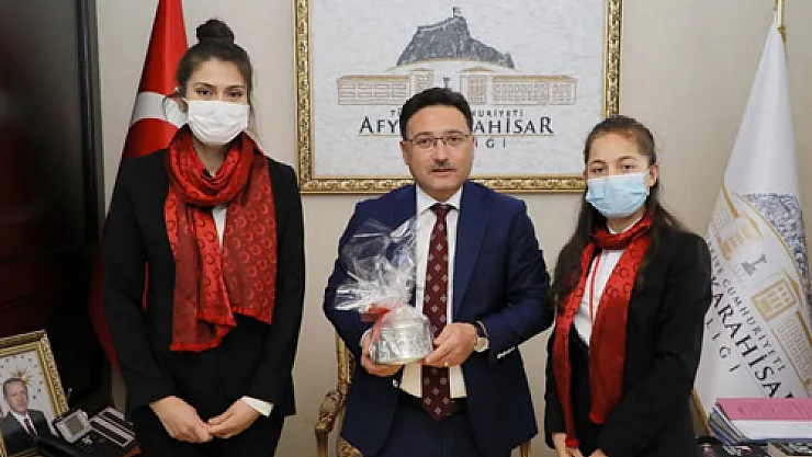 Gaziantep’in düşman işgalinden kurtuluşunun 100. Yılı etkinlikleri kapsamında öğretmen Emine Topçu, öğrenci Özlem Yapış Vali Gökmen Çiçek’i makamında ziyaret etti