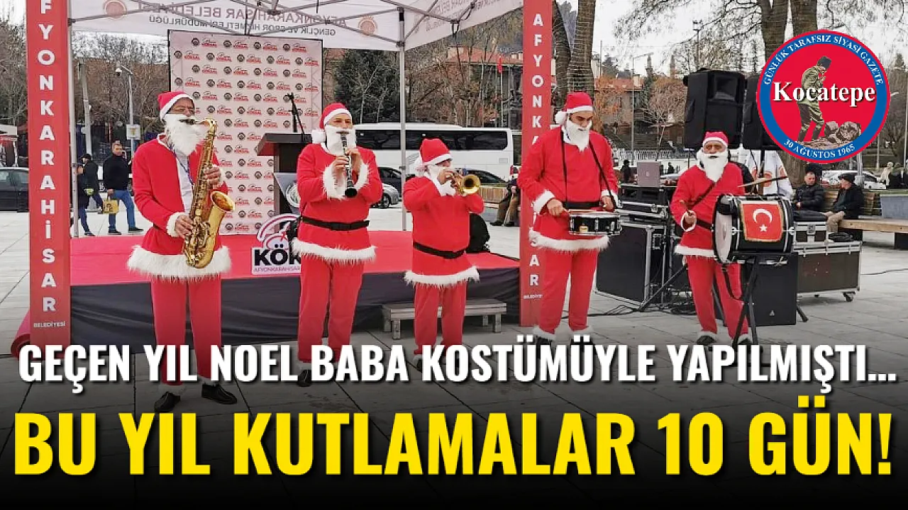 Geçen yıl “Noel Baba” kıyafetli yılbaşı kutlaması yapılmasına imkan tanıyan Afyonkarahisar Belediyesi, 2025 yılsonu, 2026 yılbaşı için de “kutlama” programını açıkladı. Zafer Meydanı’nda 20 Aralık’ta başlayacak kutlamaların 30 Aralık’a kadar devam edeceği belirtildi. Daha çok çocuklara yönelik aminasyon ve etkinliklerle geçecek olan etkinliklerde Afyonkarahisar Belediyesi Konservatuvarı Kent Orkestrası’nın da konserleri düzenlenecek.