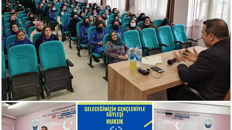 Cumhuriyet Savcısı Murat Özcan, Afyonkarahisar Kız Anadolu İmam Hatip Lisesi öğrencilerine hukuk sistemi, savcılık ve hâkimlik meslekleriyle ilgili bilgiler verdi