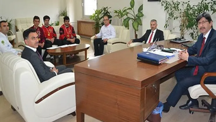 Emir Murat Özdilek Meslekî ve Teknik Anadolu Lisesi’nin yemek yarışmalarında derece alan öğrencileri İl Milli Eğitim Müdürü Metin Yalçın’ı makamında ziyaret ettiler.