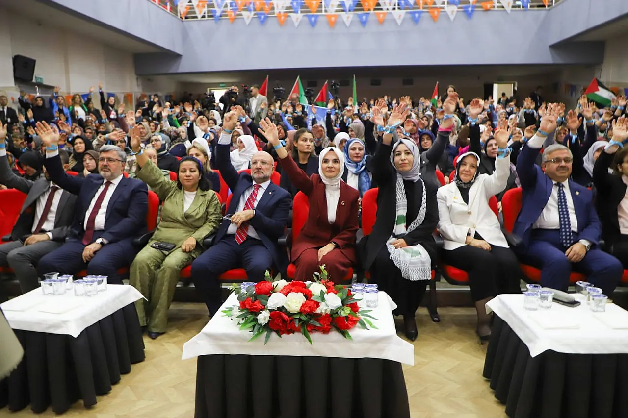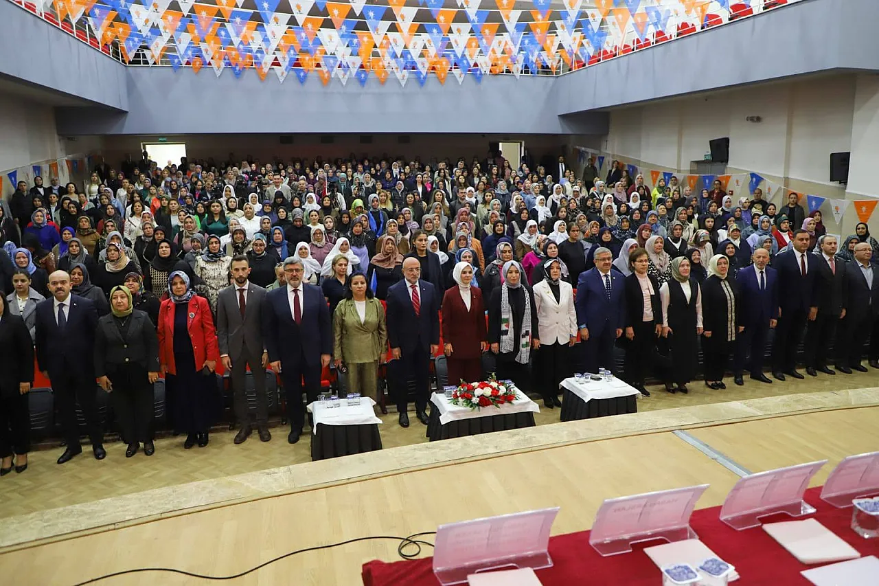 Toplantının son konuşmasını Aile ve Sosyal Hizmetler Bakanı Mahinur Özdemir Göktaş yaptı. AK Parti’nin sadece siyasi bir hareket olmadığına dikkat çeken Bakan Göktaş, şunları söyledi: “AK Parti sadece bir siyasi harekette ibaret değildir. AK Parti milletimizin umudu, kadınlarımızın ve gençlerimizin geleceğe güvenle bakmasının teminatıdır. Partimiz kurulduğu günden bugüne büyük bir dava bilinciyle yoluna devam ediyor. Bu bir bayrak yarışıdır. Burada ‘ben’ yoktur, burada ‘biz’ vardır. Bugüne kadar görev alan tüm kadın kolları başkanlarımıza ve emeği geçen herkese ayrı ayrı teşekkür ediyorum. Birlik ve beraberliğimiz sürdüğü müddetçe davamız daha da güçlenecektir. Sayın Cumhurbaşkanımızın liderliğinde, eser ve hizmet siyasetini 23 yıldır başarıyla sürdürüyoruz. Yollar yaptık, hastaneler, üniversiteler açtık. Özellikle kadınlarımızın ve kız çocuklarımızın önündeki bütün engelleri tek tek kaldırdık. Bir zamanlar başörtüsü sebebiyle eğitim ve iş hayatından uzaklaştırılan kızlarımız artık özgürce eğitim alabiliyor, iş hayatında yerini alabiliyor. Kadınlarımız bugün kanun önünde eşit haklara sahip.”