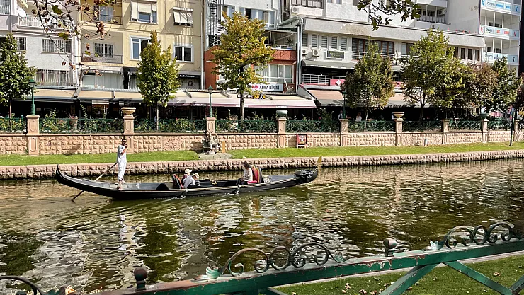 Vatandaşlar, şehrin simgelerinden olan Porsuk Çayı'ndaki gondol turlarına ilgi gösterdi.