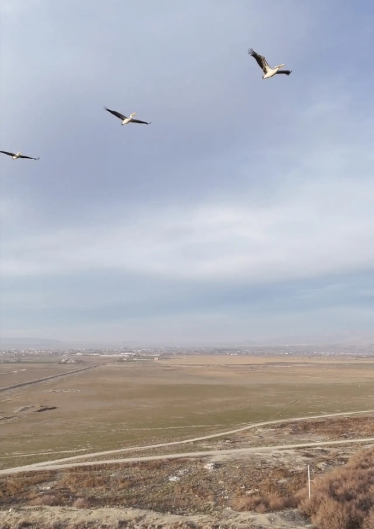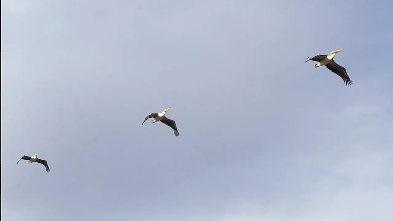 Kuşların pelikan olduğunu fark eden Çetinkaya o anları kayıt altına aldı. Görüntülerde bir süre gökyüzünde süzülen pelikanlar daha sonra gözden kayboldu.