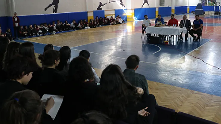 Dünya Şampiyonu Fatih Bozkurt’un öğrencilerle sohbeti sırasında Güzel Sanatlar Lisesi’nden bir öğrenci, resim çizmeye başladı. Resim yapıldıkça Fatih Bozkurt’u çizdiği anlaşılan öğrenci, detaylara girmeden ortaya güzel bir sanat çıkardı. Sohbetin sonuna kadar resmini bitiren öğrenci, yaptığı resmi Bozkurt’a teslim etti. Teşekkür ederek öğrenciden resmini alan Bozkurt öğrenci ile fotoğraf çektirmeyi de ihmal etmedi. [&hellip]