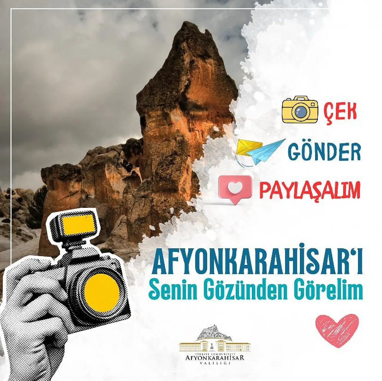 Afyonkarahisar’ın tanıtımına ve sosyal medyada ses getirmesine katkı sağlamak isteyen okuyucularımız, paylaşımlarını #Kal(p)buşehirde etiketiyle, Afyonkarahisar Valiliği’nden bahsederek yapabilir.
