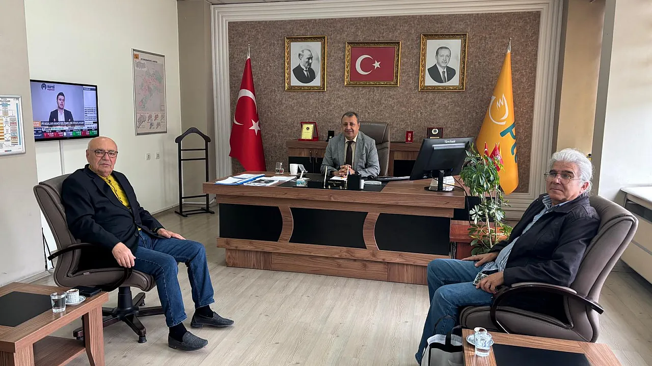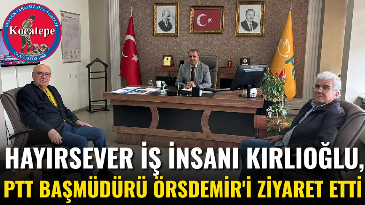 Kırlıoğlu A.Ş. sahibi hayırsever iş insanı Süleyman Kırlıoğlu, beraberinde Mali Müşavir Metin Dalyan ile birlikte Afyonkarahisar PTT Başmüdürü Mehmet Örsdemir'i ziyaret etti.