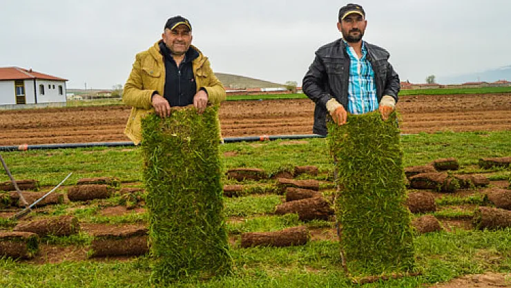 Afyonkarahisarlı Mısırlıoğlu ailesinin 200 dekarlık arazilerinde ürettiği rulo çimler, hem belediyelerin peyzaj çalışmaları için hem de bazı amatör spor kulüplerinin stat zeminlerinde kullanılıyor