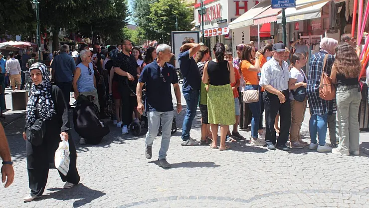 Eskişehir’de bir ev eşyası satan mağazanın düzenlediği hediye çekilişine katılan vatandaşlar uzun kuyruklar oluşturdu.