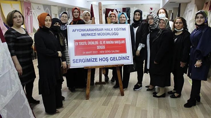 Sergide Afyonkarahisar Halk Eğitimi Merkezi Müdürlüğünce mahalle, köy ve beldelerde açılan Ev Tekstili Ürünleri Hazırlama, Geleneksel El Nakışları ve Makine Nakışları kurslarında üretilen el emeği göz nuru mefruşat ürünleri sergilendi.