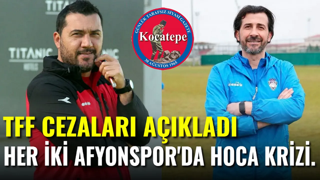 Türkiye Futbol Federasyonu tarafından yürütülen bahis soruşturması kapsamında PFDK’ya sevk edilen Afyonspor Teknik Direktörü Özgür Polat ile 1923 Afyonkarahisarspor Teknik Direktörü Serdar Hoşhan’a “men” cezası verildi.