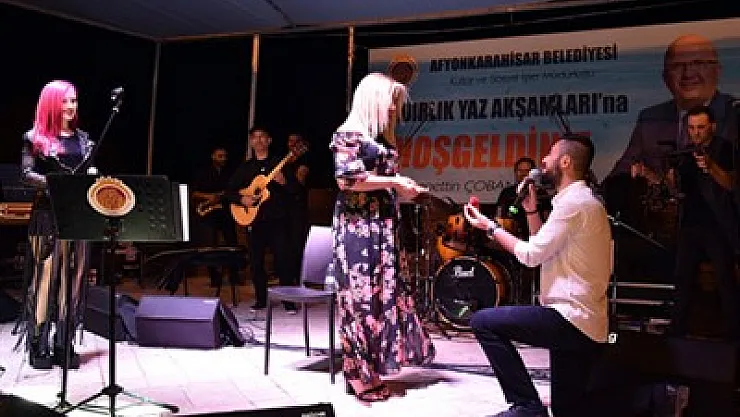 Konser sırasında sahneye gelen Afyonkarahisar’da yaşayan Adana doğumlu 24 yaşındaki Erhan Şimşir, 3 yıllık sevdiği Merve Genç’e sahneden evlenme teklifinde bulunmak istediğini söyledi. Erhan Şimşir’in bu isteğini kırmayan Aslı Güngör, seyircilerin de yoğun alkışlarıyla Merve Genç’i de sahneye çağırarak çifti başbaşa bıraktı. Sevgilisinin önünde diz çöken genç, “Ben yaşlandığımda, takma dişlerimin ve gözlüklerimin yerini unuttuğumda yerini soracağım kişi sen olur musun?” diyerek evlenme teklifinde bulundu. Biraz şaşkın ve duygulu gözlerle mikrofonu eline alan genç kız, “Ben de seni seviyorum ve seninle bir ömür yaşamaya evet diyorum ” diyerek evlenme teklifini kabul etti. Belediye Başkanı Burhanettin Çoban da genç çifti tebrik ederek mutluluklar diledi.
