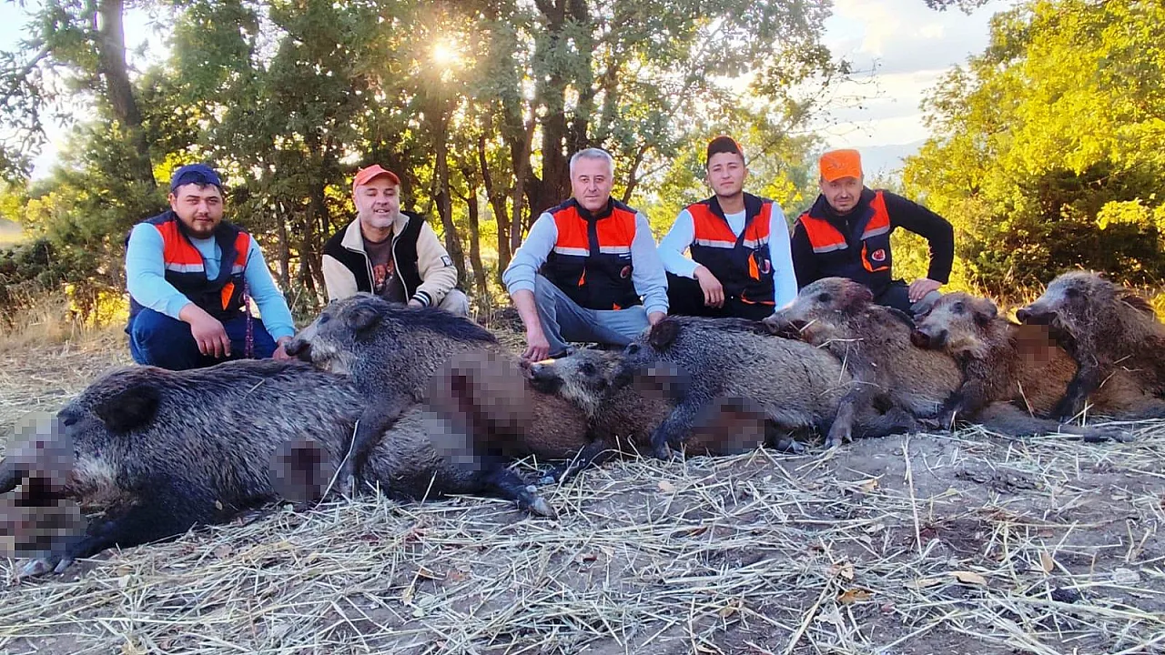 Kütahya'nın Hisarcık ilçesindeki avcılar 6 saatte 7 yaban domuz vurdu.