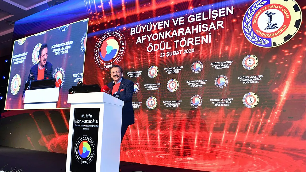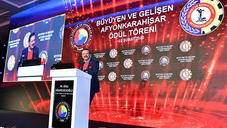 Afyonkarahisar Ticaret ve Sanayi Odası tarafından düzenlenen Büyüyen ve Gelişen Afyonkarahisar Ödül Töreni, Türkiye Odalar ve Borsalar Birliği Yönetim Kurulu Başkanı M. Rifat Hisarcıklıoğlu’nun katılımıyla gerçekleştirildi.