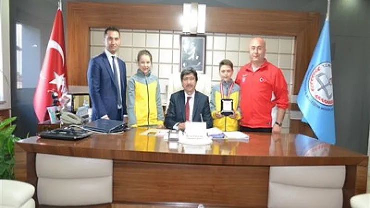 Kocatepe Ortaokulu öğrencilerinden Sabri Hız ve Rahime Çelikbilek İl Milli Eğitim Müdürü Metin Yalçın’ı makamında ziyaret etti. Mersin’de yapılan Okullar Arası Yıldızlar Türkiye Epe Şampiyonası’nda Türkiye ikincisi olan Sabri Hız ve aynı müsabaka da beşinci olan Rahime Çelikbilek, Okul Müdürü Üçler Yıldırım ve Beden Eğitimi Öğretmeni Erkan Akkaya eşliğinde İl Milli Eğitim Müdürü Metin Yalçın’ı ziyaret ederek başarı sevincini paylaştılar. Okul Müdürü Yıldırım, öğrencilerin sporda daha önce gösterdikleri başarılar hakkında bilgi verdi. Sabri Hız’ın Şubat 2016’da Antalya’da düzenlenen Minik Minik Eskirim Türkiye Şampiyonası’nda “Erkek Epe Türkiye Şampiyonu” olduğunu belirtti. Uluslar arası alanda da derece alan Sabri Hız, hedefinin bundan sonra uluslar arası alanda daha çok başarı elde ederek bayrağımızı gururla dalgalandırmak olduğunu söyledi.