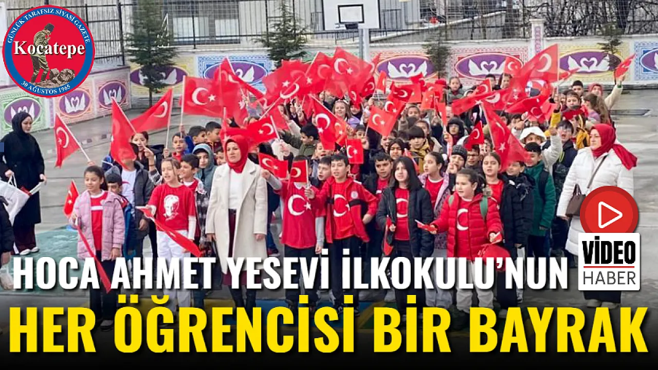 Hoca Ahmet Yesevi İlkokulu'nun Her Öğrencisi Bir Bayrak