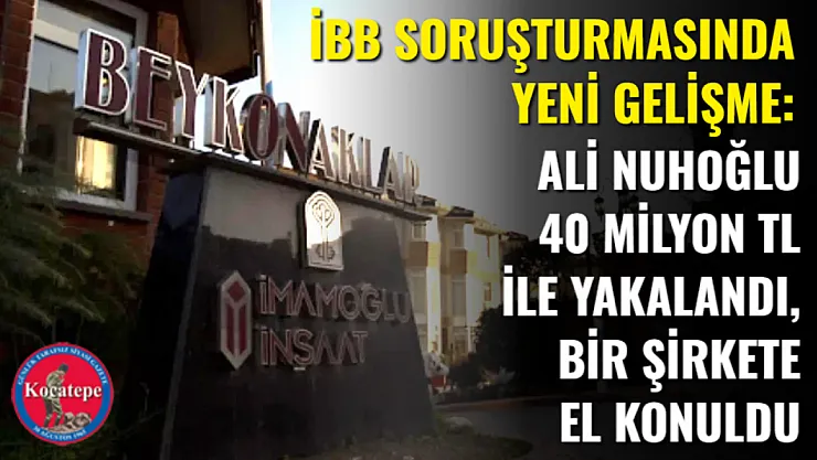 İstanbul Büyükşehir Belediyesi'ne (İBB) yönelik yürütülen soruşturma kapsamında yeni gelişmeler yaşandı. Hakkında gözaltı kararı bulunan Ali Nuhoğlu'nun, 40 milyon TL nakit para ile yurt dışına kaçmaya çalışırken yakalandığı bildirildi. Aynı soruşturma çerçevesinde, İBB Başkanı Ekrem İmamoğlu'nun ortak olduğu bir şirkete de mahkeme kararıyla el konuldu.