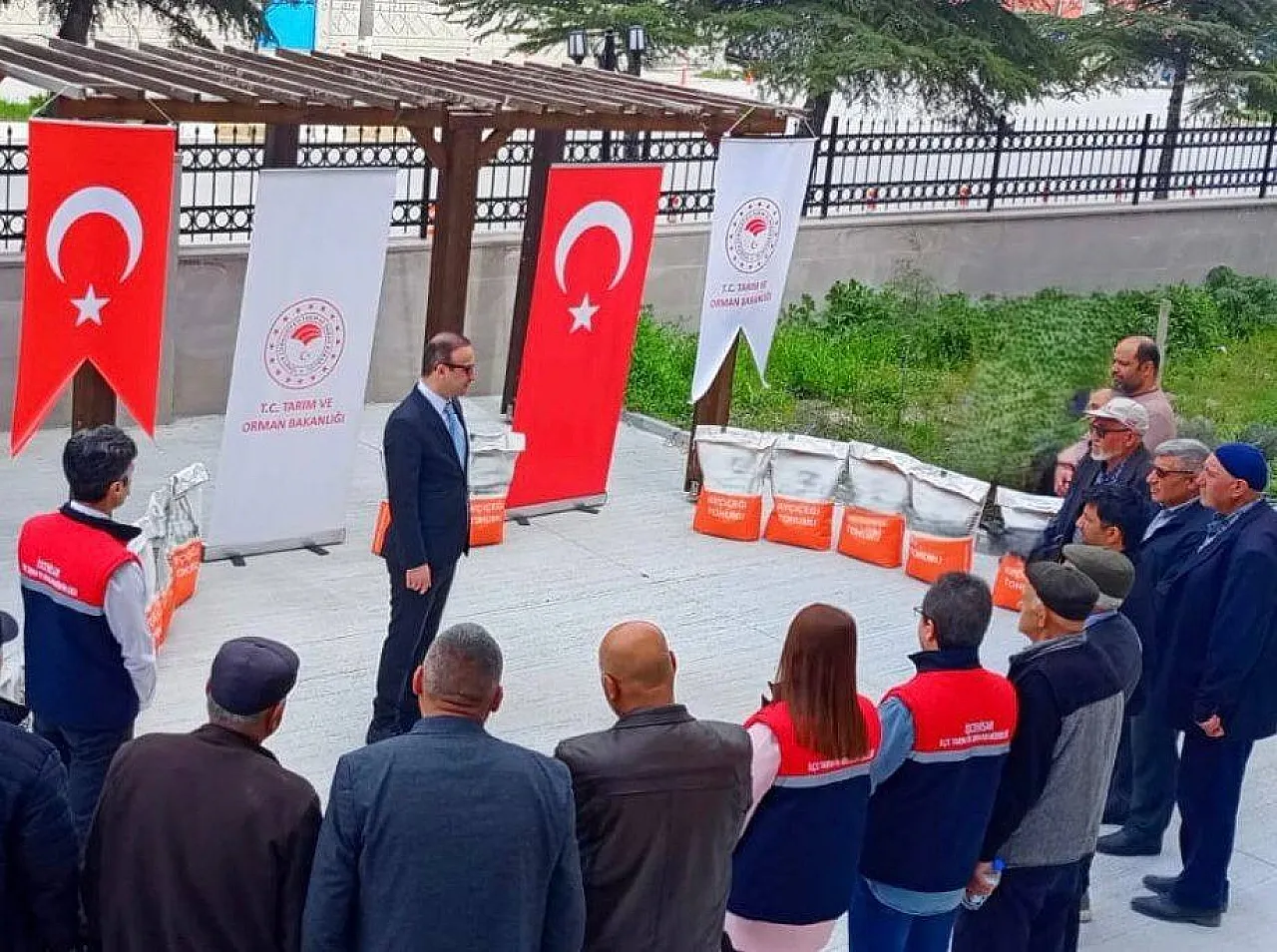 Tohum dağıtım törenlerine; İscehisar Kaymakamı Enis Akdadaoğlu ile İhsaniye Tarım ve Orman İlçe Müdürü Yasin Şen katıldı.