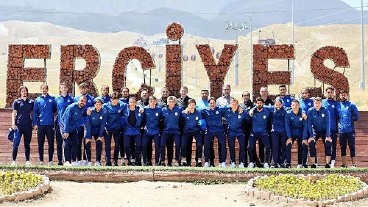 Kayseri Erciyes’te Yüksek İrtifa Kamp Merkezi’nde çalışmalarına devam eden AFJET Afyonspor, Erciyes yazısı önünde fotoğraf çektirdi