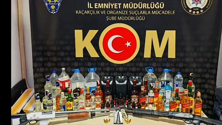 Operasyon kapsamında, 1 adet 7,65 mm çapında tabanca, 2 adet şarjör, 14 adet 7,65 mm çapında dolu fişek, 2 adet yivsiz av tüfeği, 7 adet bandrolsüz içki, 24 adet şişelere doldurulmuş el yapımı içki, 15 litre el yapımı içki, 10 litre etil alkol ve 12 adet içki yapımında kullanılan aroma verici ele geçirilmiştir.