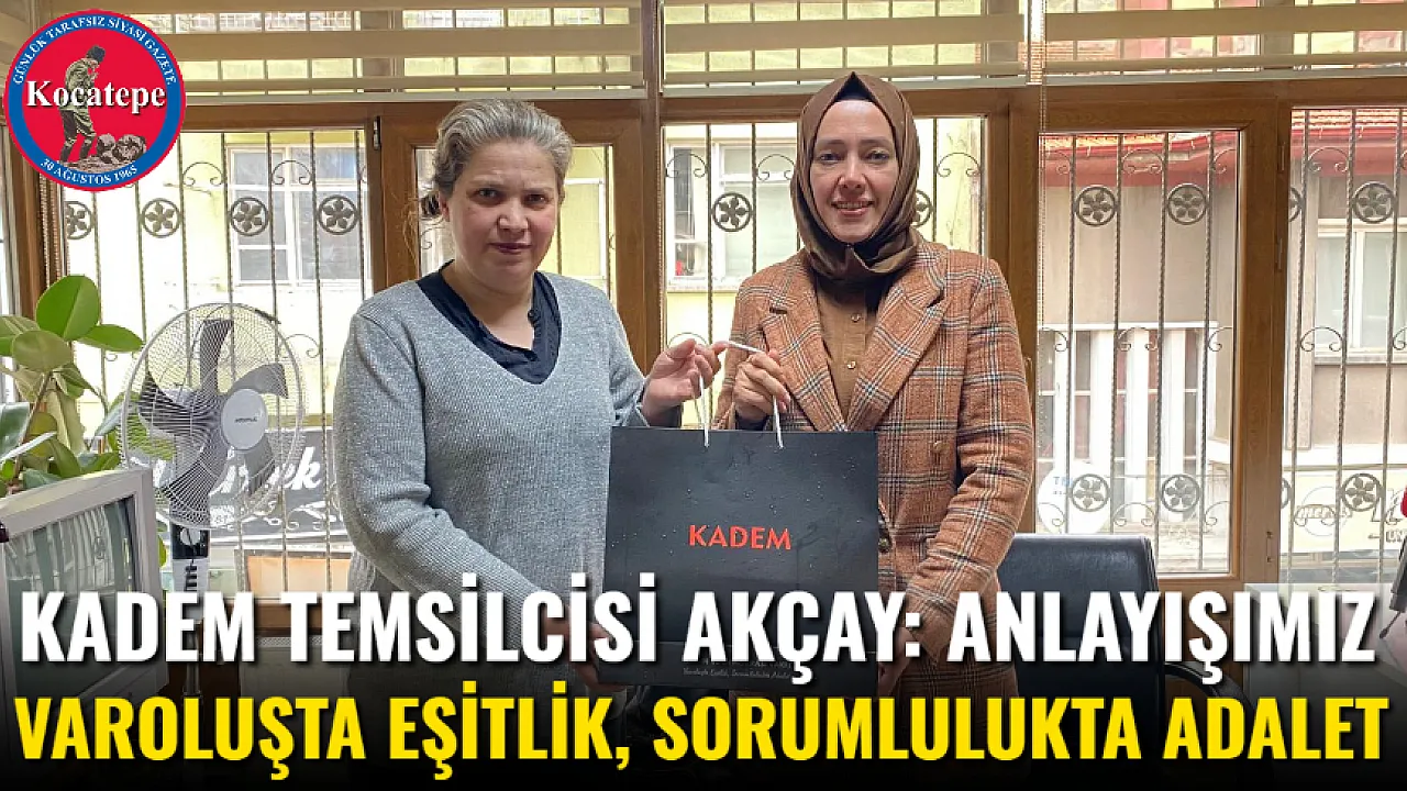 KADEM, olarak kadın-erkek ilişkisinde "toplumsal cinsiyet eşitliği" yerine “Varoluşta eşitlik, sorumlulukta adalet” sloganını benimsediklerini vurgulayan Akçay, sözlerini şöyle tamamladı: “Biz KADEM olarak, ‘Varoluşta eşitlik, sorumlulukta adalet’ anlayışını benimsedik. Bu yaklaşımla, kadın ve erkeğin yaratılışta eşit olduğunu ancak sorumluluklar ve fiziksel farklılıklar nedeniyle kadınların belirli alanlarda fiziki gücün veya ağır mesai kavramının önemli olduğu mesleklerde daha fazla desteklenmesi gerektiğine inanıyoruz. Biz KADEM olarak ‘Feminizm’ yaklaşımlarından farklı bir duruş sergiliyoruz. Toplumdaki ‘erkek egemen’ zihniyetin değişmesi gerekli olup, liyakatin cinsiyetten bağımsız olarak esas alınması gerektiği inancındayız.”